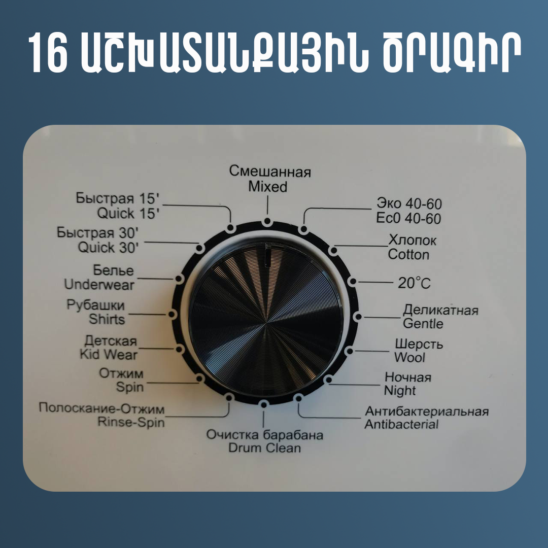 16 աշխատանքային ծրագիրը թույլ է տալիս ընտրել ցանկալի ռեժիմը և վայելել գերմաքուր հագուստը։